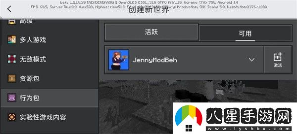 8.點(diǎn)擊設(shè)置——資源包或行為包,選擇“JennyModBeh",點(diǎn)擊激活