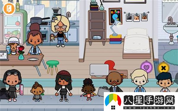 5、又或者點(diǎn)擊左上角的退出房間按鈕,去到自己的家中,可以看到也有很多小朋友,點(diǎn)擊任何人物或者物品都可以移動(dòng)。