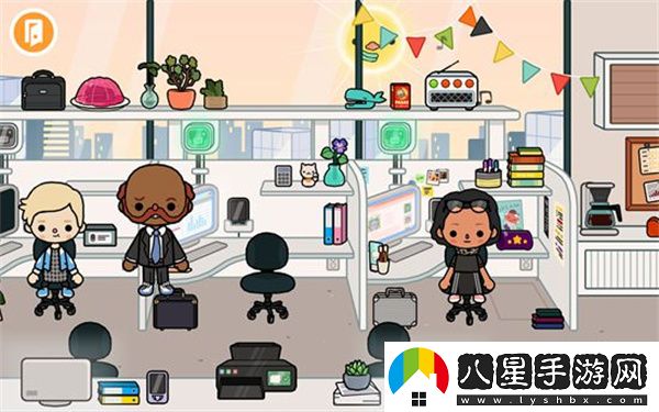 2、我們隨便點(diǎn)擊一個(gè)大樓即可進(jìn)入其中,例如我們選擇商業(yè)用樓,進(jìn)來后發(fā)現(xiàn)里面是一間辦公室,可以看到很多辦公用品,還有很多工作的人員。