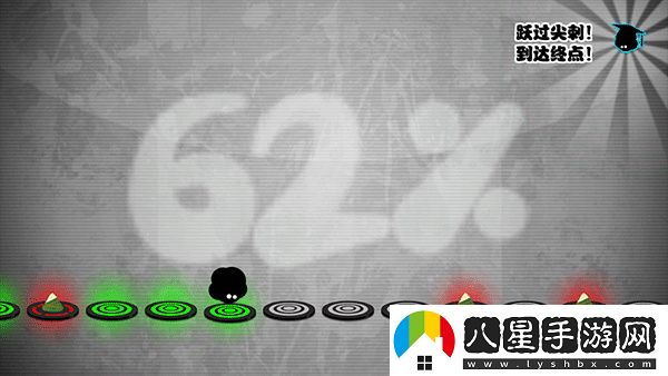 永不言棄是一款音樂(lè)節(jié)奏類(lèi)型的闖關(guān)冒險(xiǎn)游戲。玩家可以控制自己的墨點(diǎn)角色,然后不斷跳躍起來(lái),跟隨著背景音樂(lè),跳動(dòng),完成自己的闖關(guān)。每一個(gè)關(guān)卡的音樂(lè)都是有節(jié)奏感的,節(jié)奏沒(méi)有卡好,就非常難受,很容易失敗。