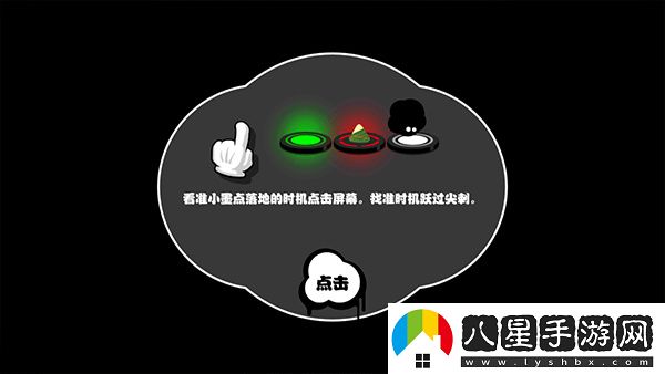 3.看準(zhǔn)小墨點(diǎn)時(shí)機(jī)點(diǎn)擊屏幕,找準(zhǔn)時(shí)機(jī)開(kāi)始跳躍。