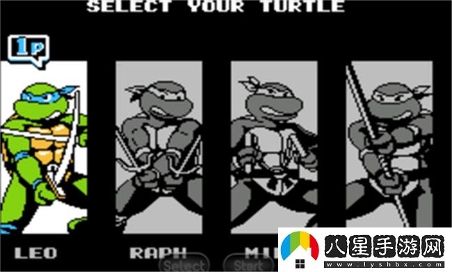 1. 萊昂納多(紅色眼罩):龜殼可以防彈,武器為雙叉,喜歡跳舞和看電影,大招為向前頂。