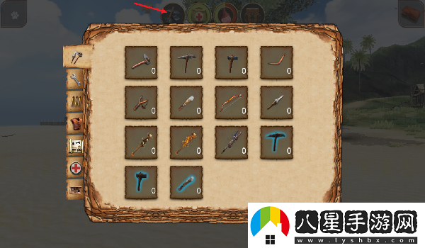 8.點(diǎn)擊最上方的第一個(gè)按鈕,還可以利用各種材料來制作工具。