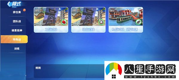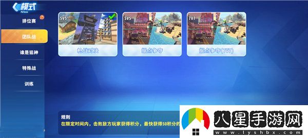 5V5的狙擊對決:規(guī)則同樣是在指定時間內(nèi)(5分鐘)擊敗敵方玩家獲得積分,率先達到50積分取勝。