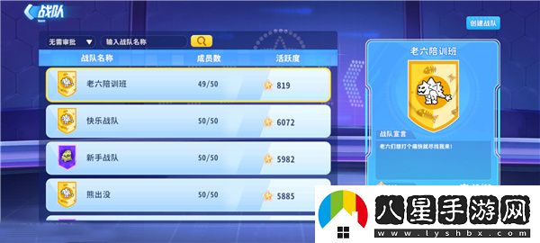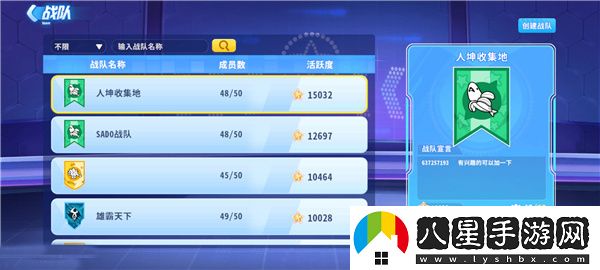 在游戲主頁的戰(zhàn)隊界面中,大家可以看到各個戰(zhàn)隊的戰(zhàn)隊名稱、戰(zhàn)隊成員數(shù)、戰(zhàn)隊活躍度。點擊戰(zhàn)隊后,你可以看到右邊的戰(zhàn)隊具體介紹,有戰(zhàn)隊宣言和申請加入的選項。大家可以多挑選幾個戰(zhàn)隊,通過戰(zhàn)隊宣言里的提示去找到適合自己的戰(zhàn)隊!