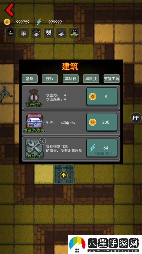 5、然后躺平賺錢,利用金幣來升級購買各種建筑,抵擋紅衣鬼,不同建筑擁有不同功能,玩家需要合理搭配組合;