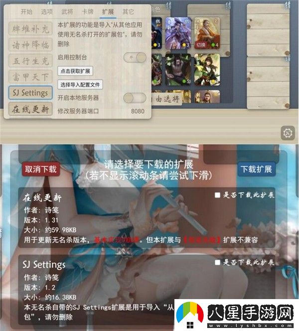 三、本無名殺自帶的 SJ Settings 擴(kuò)展功能有:
