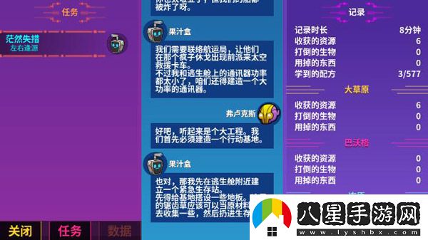 1.不斷建造大量的配方,裝備強大的武器裝備,采集更多的資源,開始自己的冒險。
