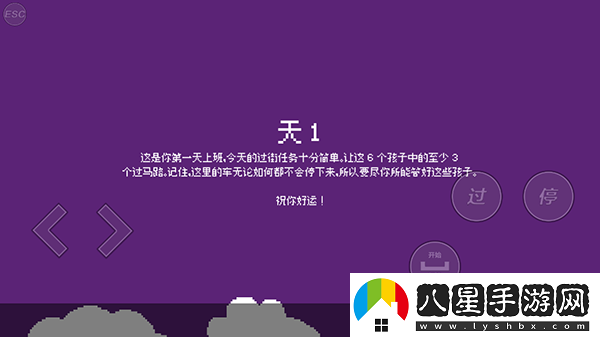 像素游戲畫風(fēng),簡(jiǎn)單的畫面風(fēng)格,沉浸式的過馬路體驗(yàn),小朋友開始過馬路了,如果你一定時(shí)間內(nèi)沒有讓小朋友過去,他們機(jī)會(huì)自己過去,會(huì)吵著過去,你可以使用招牌或者道具來躲避車流量,避免小朋友被撞。