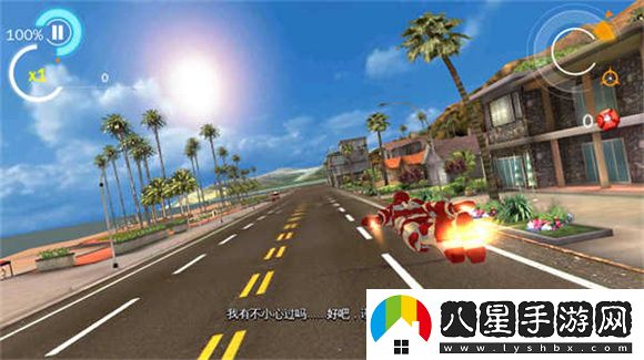 5、當(dāng)我們?cè)O(shè)置完畢進(jìn)入游戲之后,便可以看到鋼鐵俠正在飛行,接受任務(wù)
