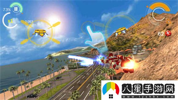 6、我們可以左右擺動(dòng)手機(jī)來調(diào)整飛行為止,通過點(diǎn)擊或者拖動(dòng)進(jìn)行炫酷攻擊