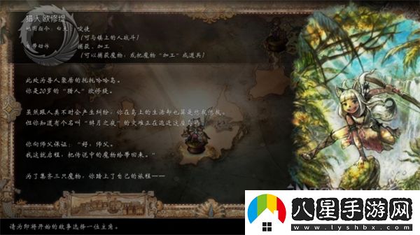 災(zāi)難席卷托托哈哈后,獵人奧切特出發(fā)去尋找傳說中最偉大的野獸。她身邊還有兩只馴服的野獸之一。