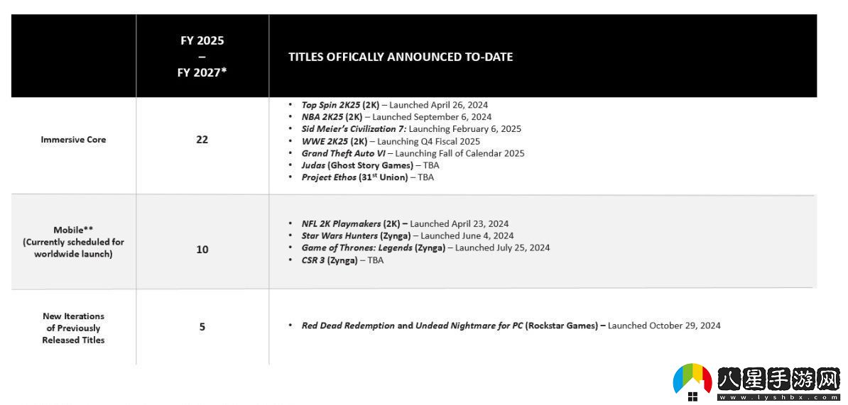 以下是Take-Two正在開發(fā)的游戲的詳細(xì)信息,與上一季度相比沒有顯著變化。GTA6仍計劃于2025年秋季發(fā)行。唯一的重大變化是由于今天宣布出售Private Division,獨立游戲被移除。買家和售價未知。